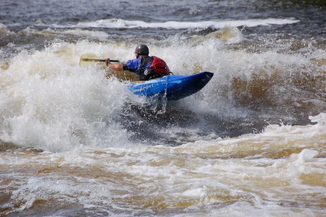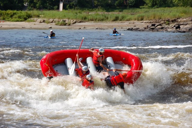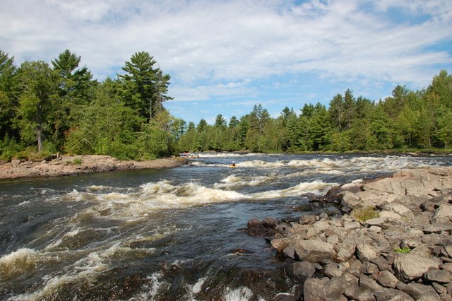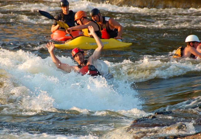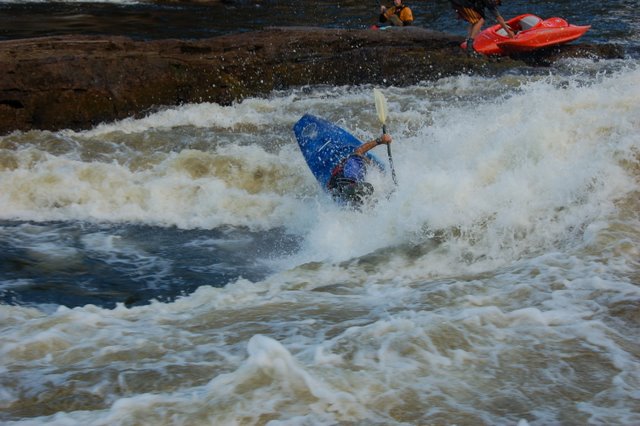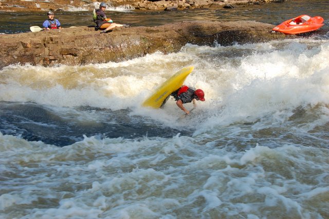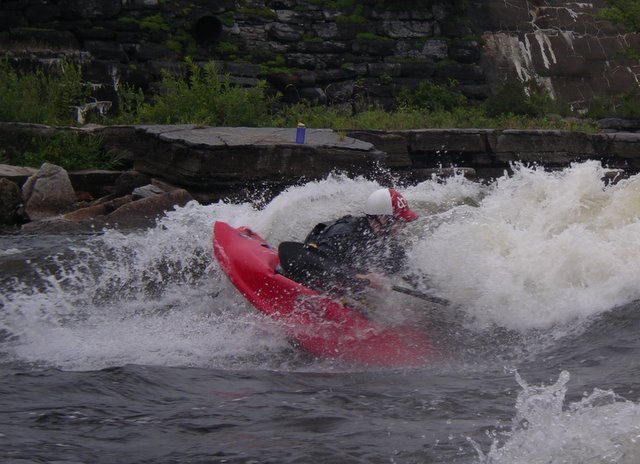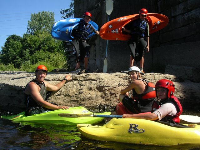 Fast forward four years, it's 2007. Once again we planned to paddle the Ottawa. This time we found out our friend Erik and Sue are going there for fifth or sixth time. Looking at the map, I saw we will drive through Watertown, NY on the way to Ottawa. The place sounds familiar but I couldn't place it right away. Then I remembered. We were watching "The Secret Lives of Women" one evening and it was about women in the adult entertainment industry. They interviewed one woman that was from Watertown and in the interview the woman was standing against the railing of a bridge over a river and in the distant background there was a kayaker surfing a wave. We both were glued to the screen wondering where the heck that wave is. The wave turned out to be Hole Brothers, on the Black River, and we discovered another park'n play spot called Route 3 wave. |